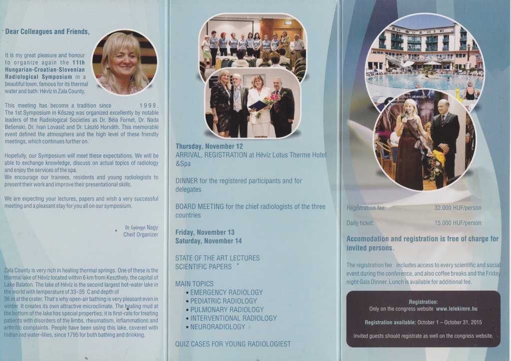 11. Mađarsko-Hrvatsko-Slovenski radiološki simpozij održat će se 13.-14. studenog 2015. godine u Hévízu, Mađarska.